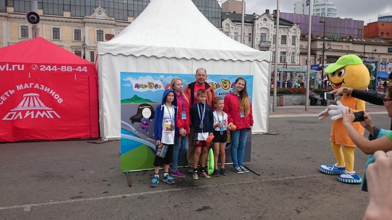 24.09.2016 у нас во Владивостоке состоялся первый марафон.https://russiarunning.com/event/VladivostokMarathon2016/results Детям дали тоже попробовать свои силы на дистанции 1 км. К сожалению возрастная была только 6-13 лет и девочки с мальчиками вместе бились за три призовых места. Детей было 100-150. Дистанцию эту Илья бежал уже в третий раз, единственное организаторы Международного марафона ее сделали немного длиннее, чем на Зеленых марафонах Сбербанка, отмерив ровно1000 метров. В итоге Илюха финишировал третьим с результатом 3:49(примерно), с учетом владивостокских перепадов высот +20/-20 метров, думаю круто для него. Отстал на 5-6 секунд от мальчиков 2004 и 2006 года.